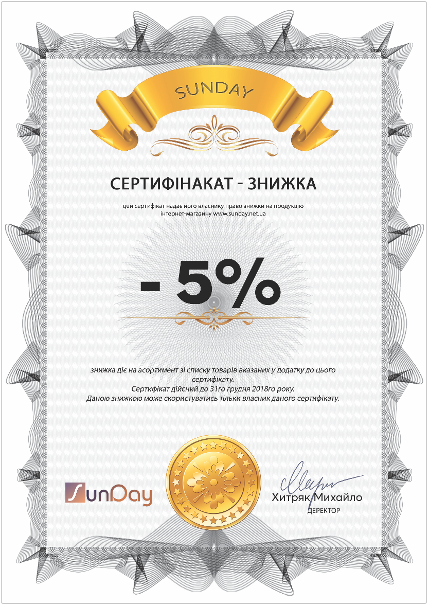 Ціни в нашому інтернет магазині значно нижчі, за ціни в магазинах міста. Додатково Ви можете скористатись знижко 5% за даним сертифікатом!
